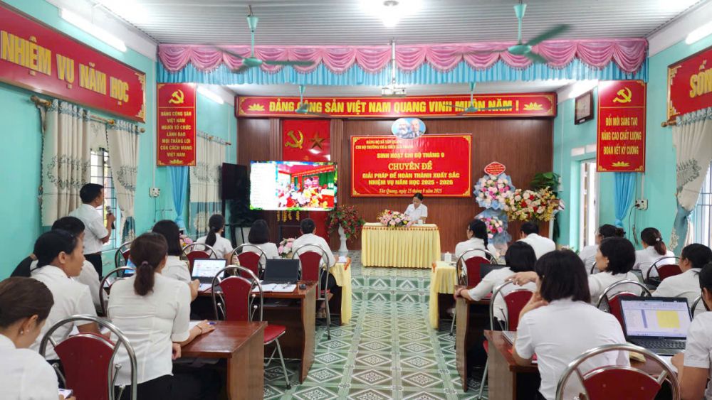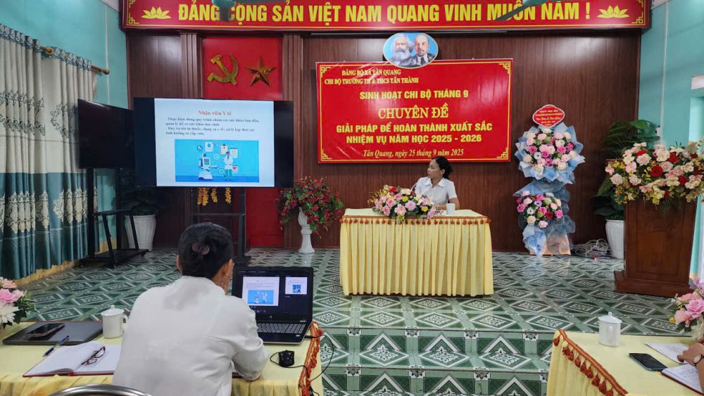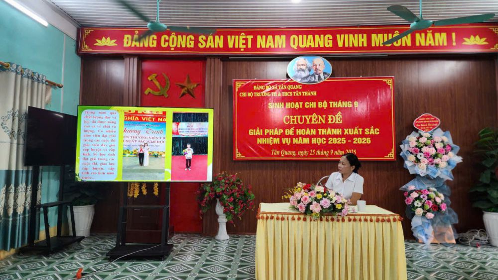 Chi bộ Trường TH và THCS Tân Thành tổ chức sinh hoạt chuyên đề tháng 9 “GIẢI PHÁP ĐỂ HOÀN THÀNH XUẤT SẮC NHIỆM VỤ NĂM HỌC 2025-2026”