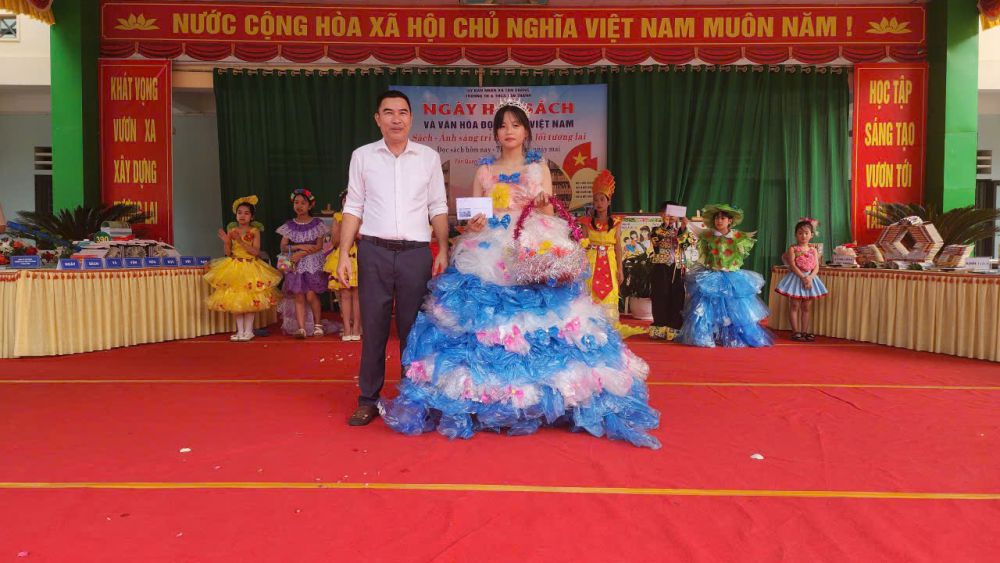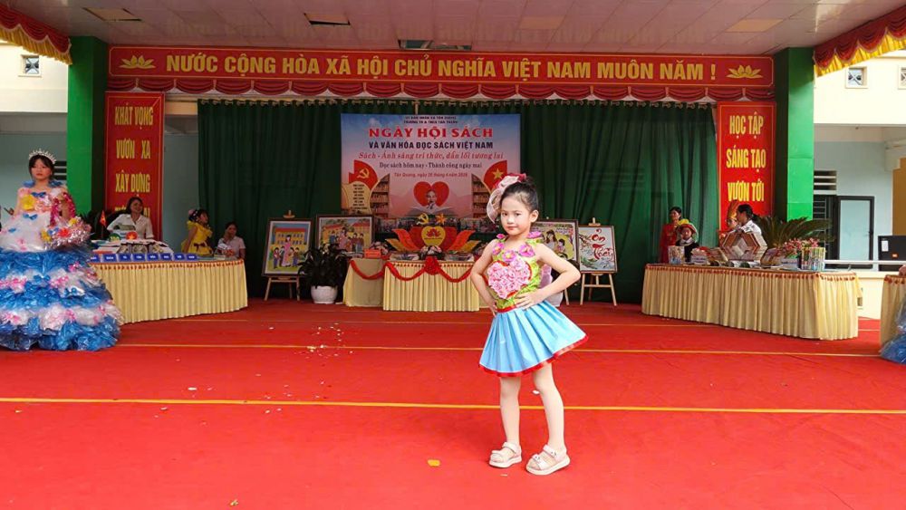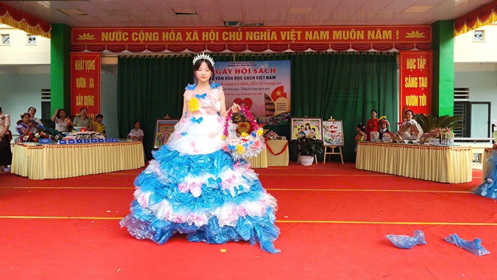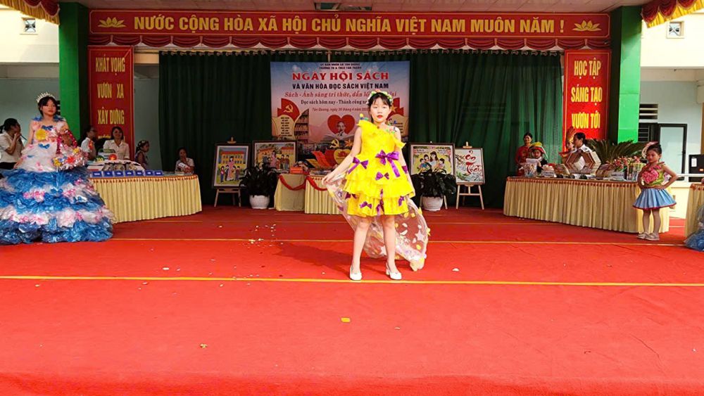 Không kém phần sôi động là phần thi trình diễn trang phục tái chế giữa các khối lớp. Trong tiếng nhạc rộn ràng và những tràng pháo tay cổ vũ, các “người mẫu nhí” tự tin sải bước trên sân khấu trong những bộ trang phục được làm từ giấy báo, chai nhựa, bao bì đã qua sử dụng… Mỗi bộ trang phục là một ý tưởng sáng tạo, một thông điệp ý nghĩa về bảo vệ môi trường và sử dụng tài nguyên một cách bền vững. Sự hồn nhiên, tự tin của các em đã góp phần làm cho ngày hội thêm phần tươi vui, đầy màu sắc.