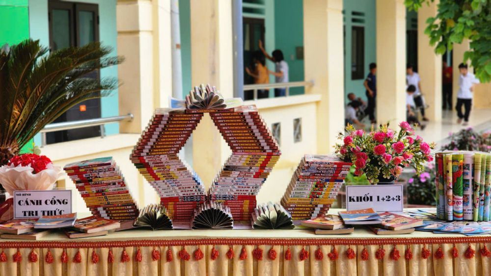 Từ những cuốn sách quen thuộc, các thầy cô đã khéo léo “thổi hồn” để tạo nên những tác phẩm nghệ thuật đầy ý nghĩa. Có mô hình thể hiện tình yêu quê hương, có mô hình tôn vinh tri thức, có mô hình gửi gắm thông điệp về ước mơ và tương lai. Mỗi tác phẩm không chỉ đẹp về hình thức mà còn chứa đựng tâm huyết, sự sáng tạo và tình yêu nghề của các thầy cô giáo. Nhiều em học sinh không giấu được sự thích thú, say mê khi được chiêm ngưỡng những “công trình” làm từ sách – những người bạn thân thiết trong hành trình học tập.