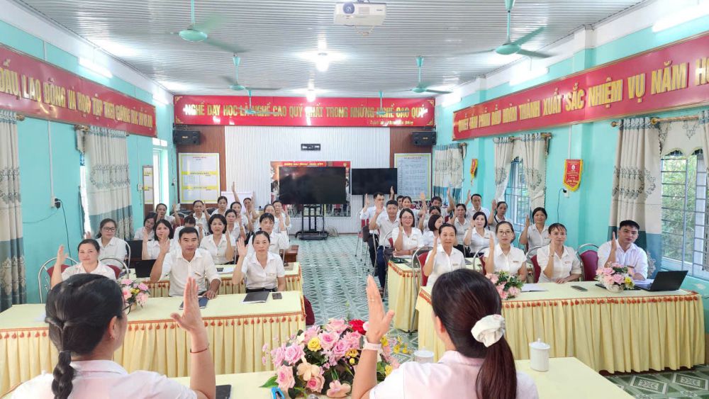 Hội nghị đã nhất trí thông qua Nghị quyết Hội nghị VC-NLĐ năm học 2025 - 2026 với sự đồng thuận cao. Nghị quyết đặt ra các chỉ tiêu cụ thể, sát với điều kiện thực tế của địa phương và nhà trường, thể hiện quyết tâm xây dựng trường TH&THCS Tân Thành trở thành đơn vị vững mạnh toàn diện, xứng đáng là địa chỉ tin cậy của phụ huynh và học sinh xã Tân Quang.